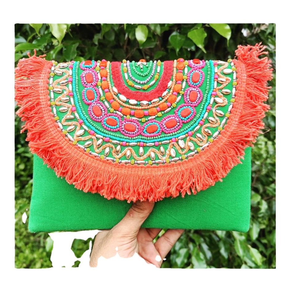 New Arrival Designer Women's Long Open Beaded Clutch Sling Bag with Thread Fringes