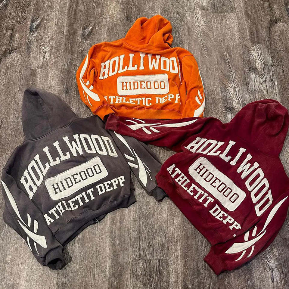New Arrival Winter Hooded Solid Distressed Design Custom Embroidery Applique Sun-Faded Acid Wash Flared Sweat Suit Streetwear