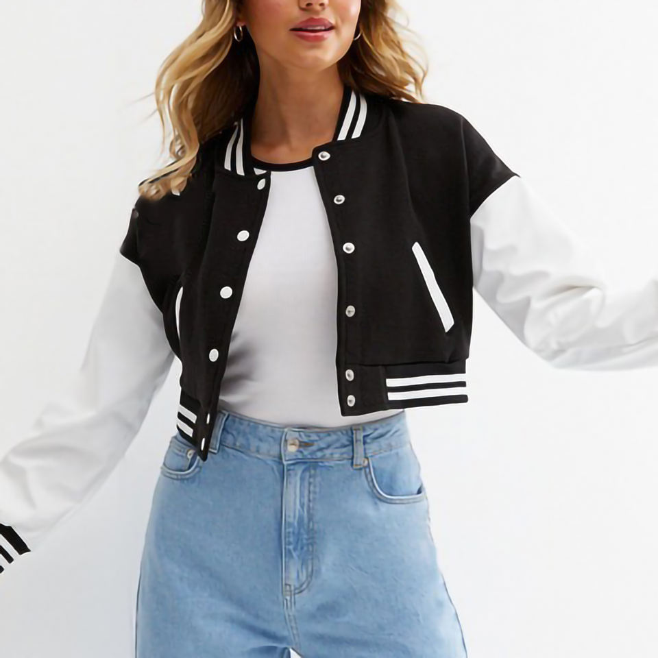 New Arrival Drop Shoulder cropped Womens Baseball Varsity Jacket Personalized Fashion Warm Oversized Letterman Jacket for Women
