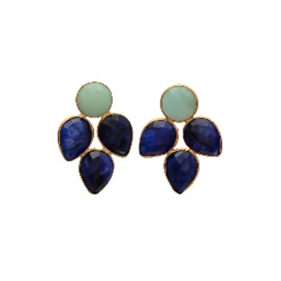New Arrival Dyed Sapphire And Amazonite Gemstone 925 Sterling Pear & Round Shape Silver Earrings