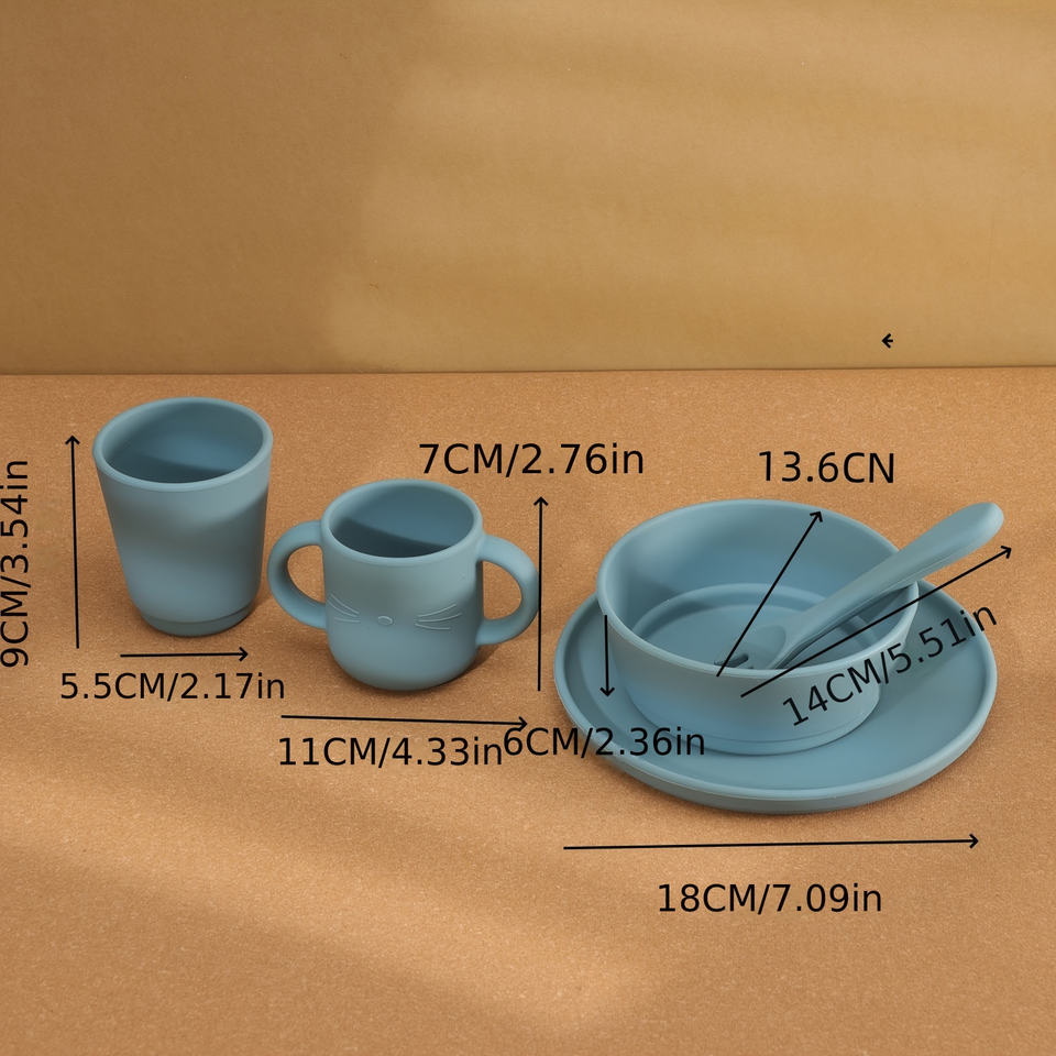 New Arrival Eco-Friendly BPA-Free Silicone Tableware Set Kids Dining Cartoon Includes Plate Bowl Cup Baby Feeding Newborns