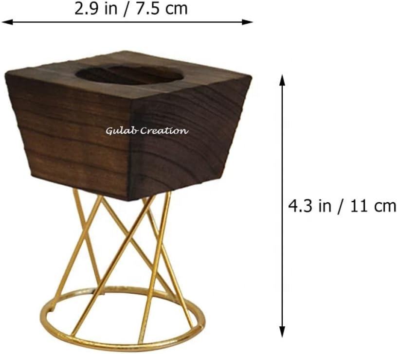 New Arrival Eco Friendly Handmade Square Pine Wooden Candle Holder with Metal Stand for Home Decoration