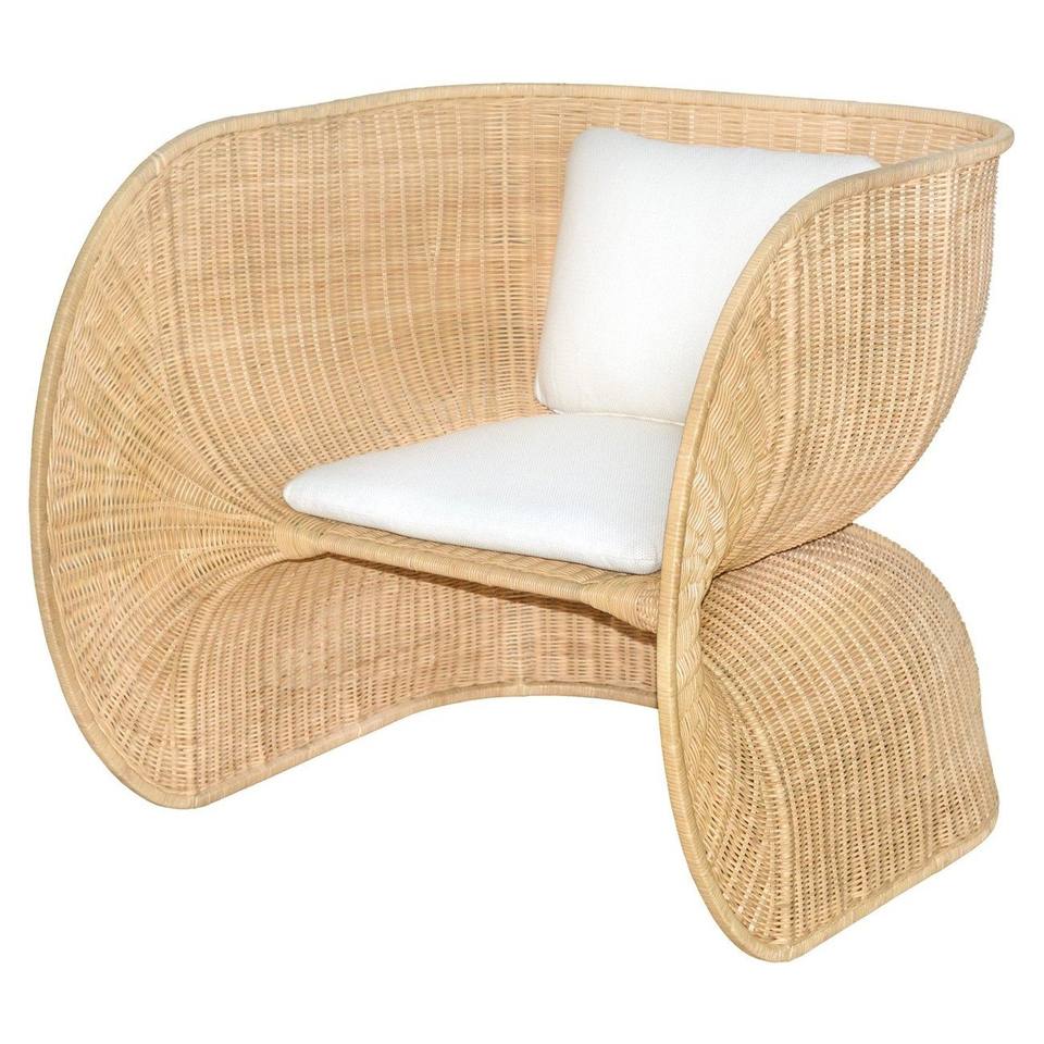 New Arrival Eco Friendly Handwoven Wicker Natural Rattan Unique Armchair With Cushion For Living Room Hotel And Resort Furniture
