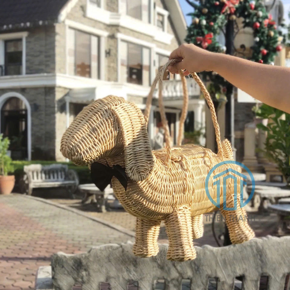 New Arrival Elegant Design Rattan Dachshund Wicker Dog Bag Wicky Dog Wicker Purse Gift for Mom or Friends Made in Vietnam