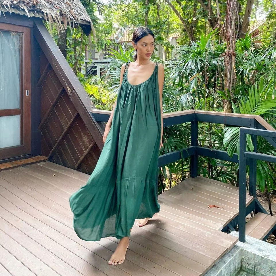 New Arrival Elegant Eco-Friendly Natural Waist Floor-Length V-neck Casual Maxi Dress Long Sleeve Washable Plus Size Summer