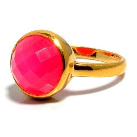 New Arrival Engagement Statement Rings Gold Plated Women Fuchsia Chalcedony Rings Chalcedony Gemstone Gold Plated Ring