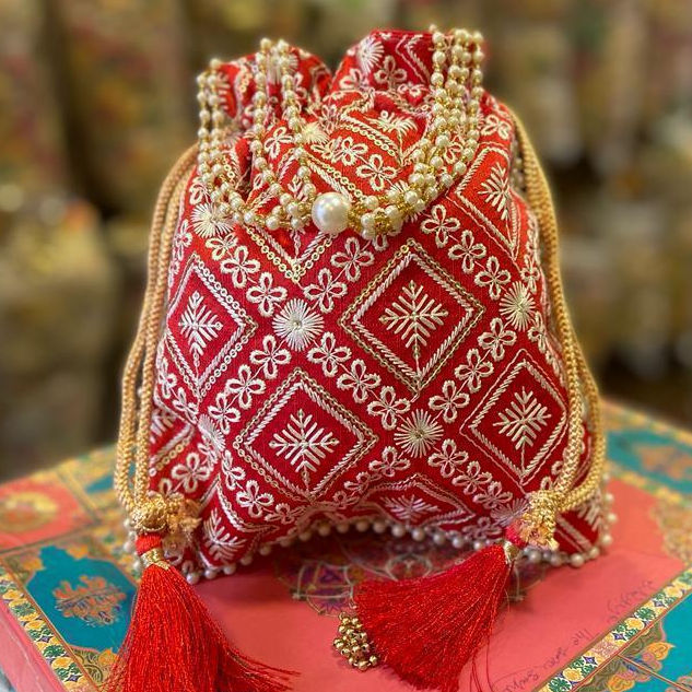 New Arrival Ethnic Women's Handmade Silk Sequence Embroidered Work Potli Bags for Women for Wedding Anniversaries Parties