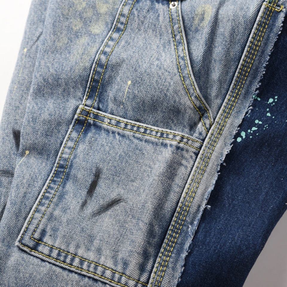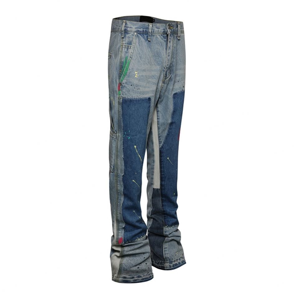 New Arrival Factory Oem Men's Jeans Pants Multi-Pocket Stacked Graffiti Patchwork Flared Jeans for Men