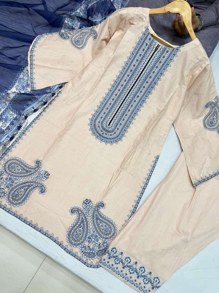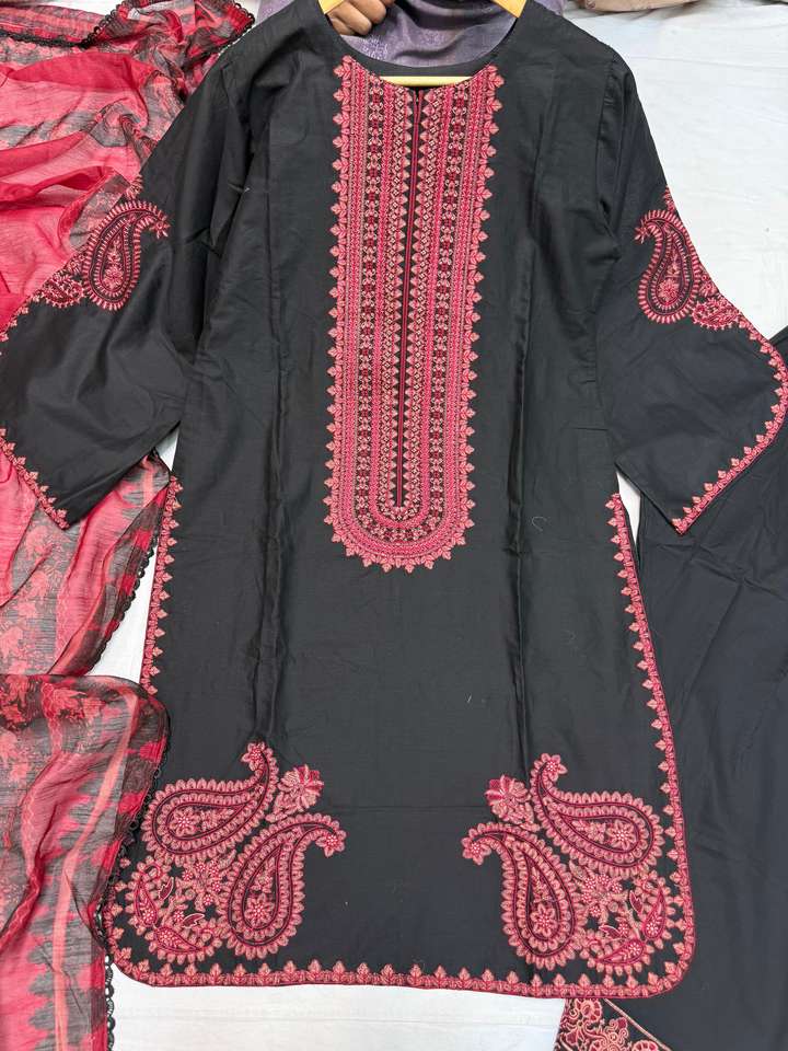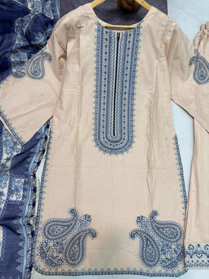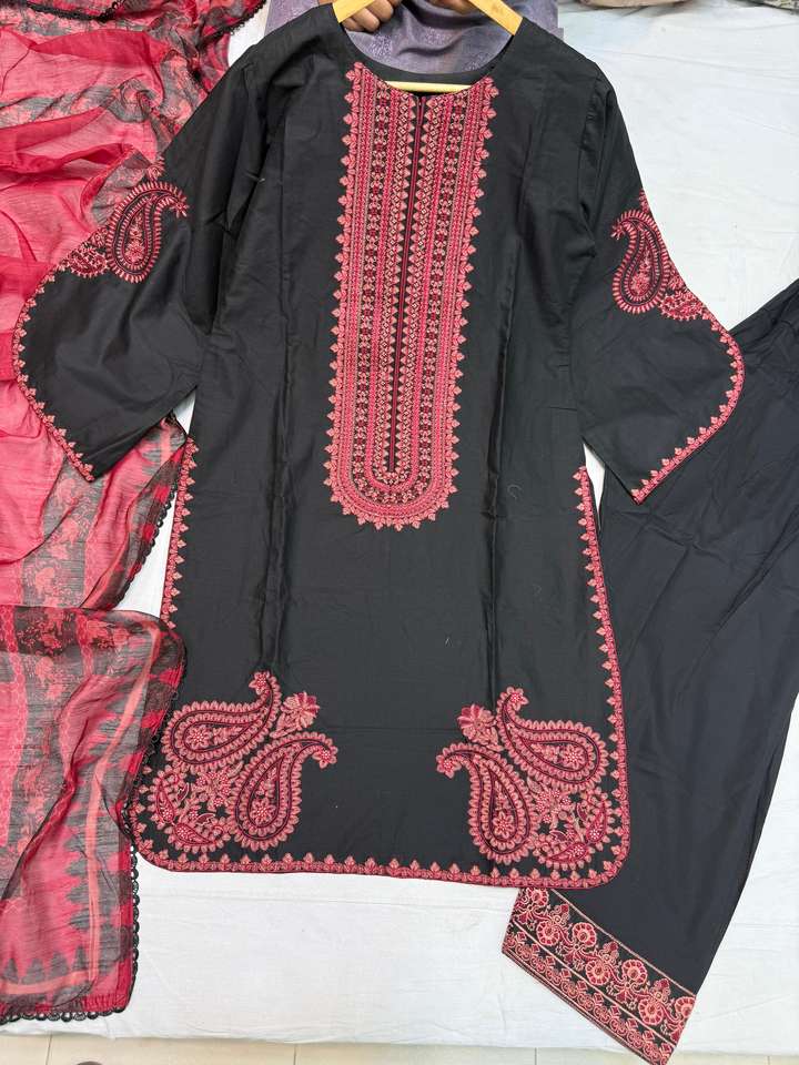 2025 New Arrival Farshi Shalwar With Cotton Stuff Embroidered Kameez Salwar & Emb Lawn Dupatta Anarkali