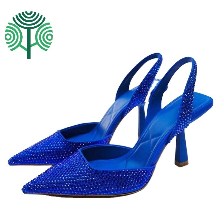 New Arrival Summer Fashion Back Strap Pointed Toe 7cm Stiletto Sexy Elegant Breathable Rhinestone Pattern Women's Sandals Shoes