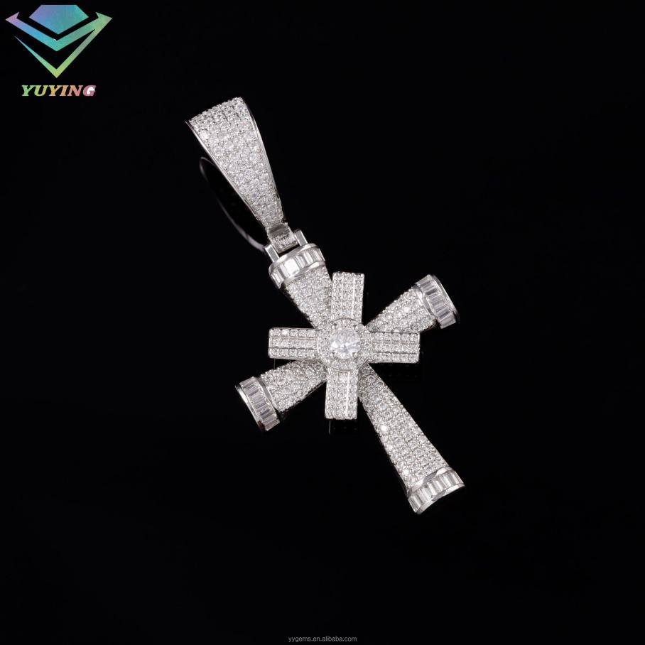 New Arrival Fashion Jewelry Cross Pendant for Necklace Pass Tester 925 Sterling Silver Moissanite Cross Pendant Charms for Men