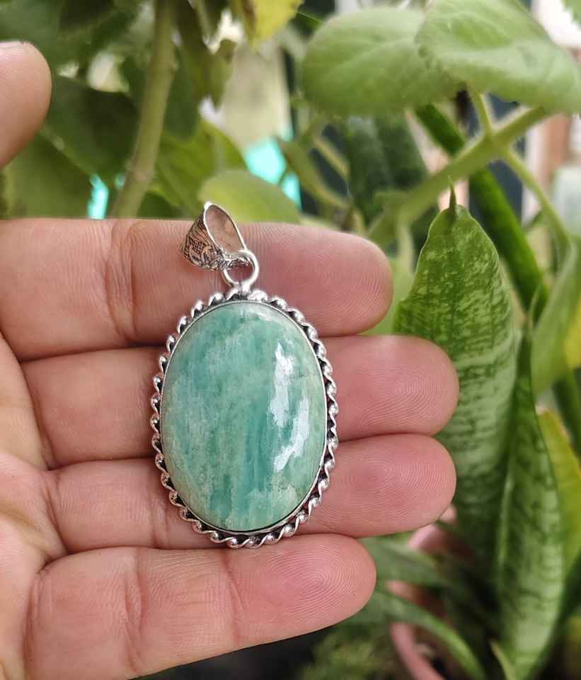 New Arrival Fashion Jewelry Natural Amazonite Gemstone Oval Pendant Necklace Silver Plated Handmade Healing Crystal