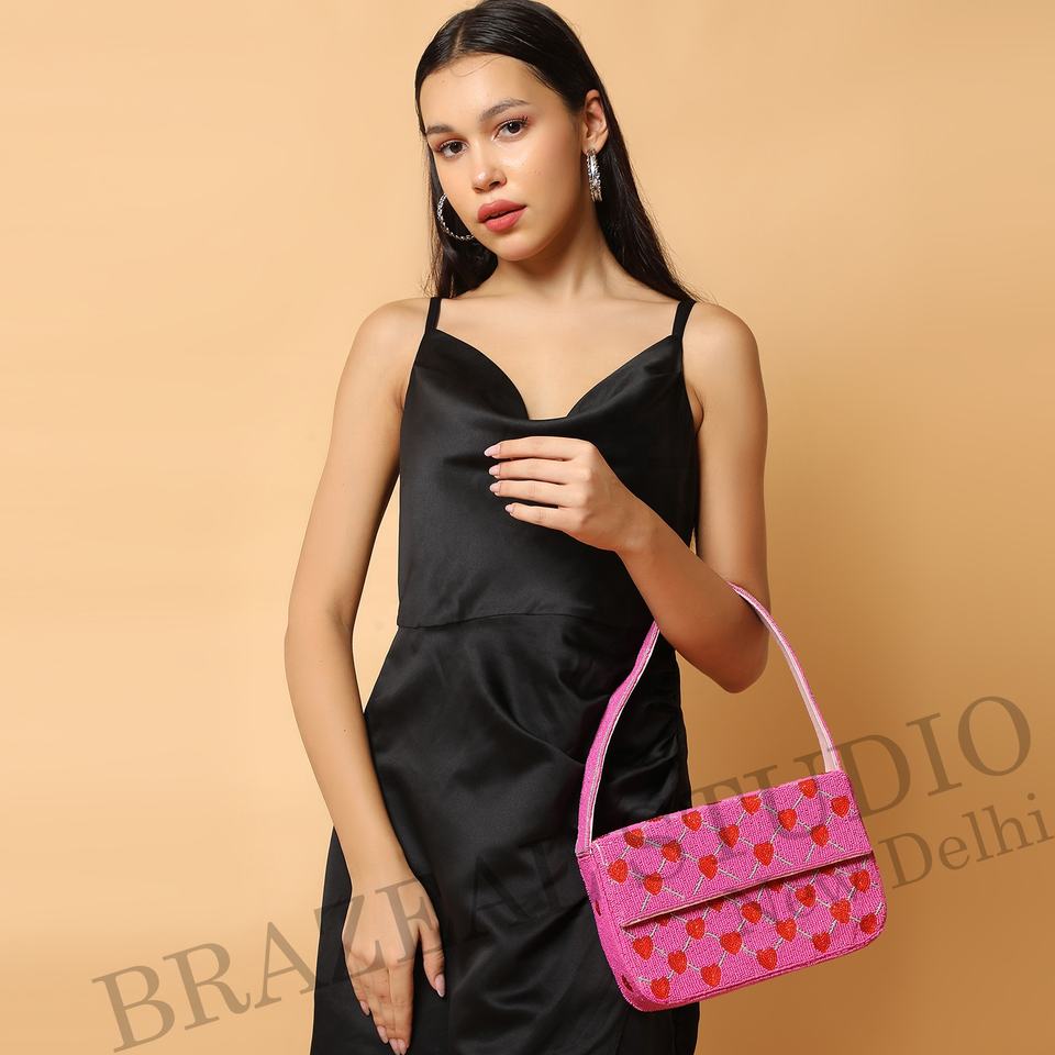 New Arrival Fashion Women Beaded Geometric Pattern Single Strap Shoulder Clutch Purse Bridal Wear Customized Logo Cover Closure