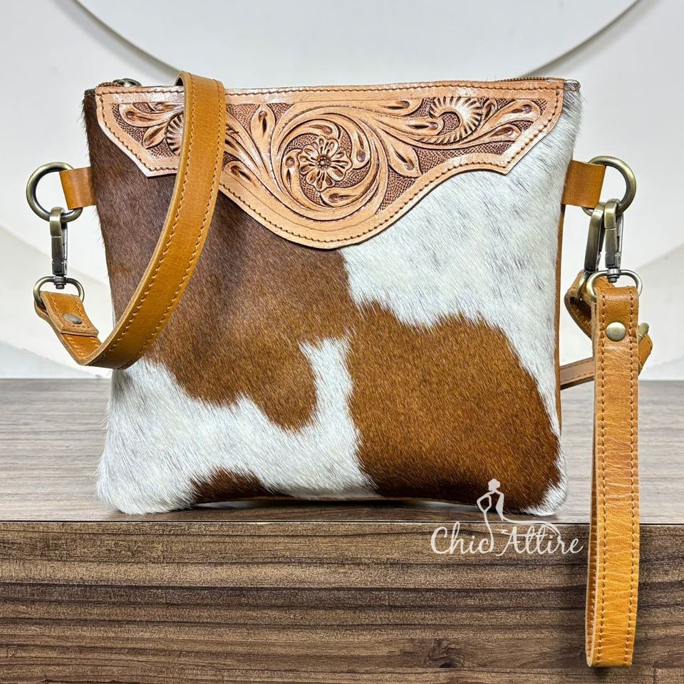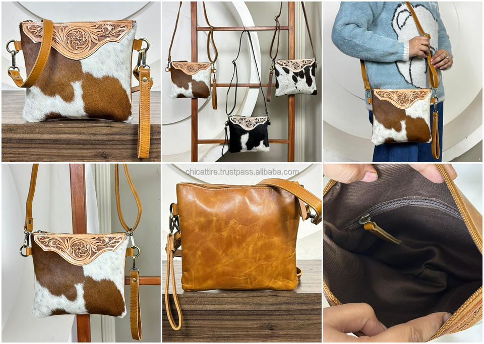 New Arrival Fashionable 2025 Floral Handmade Tooled Cowhide Leather Crossbody Bag Western Style Design Shoulder Wristlet Purse