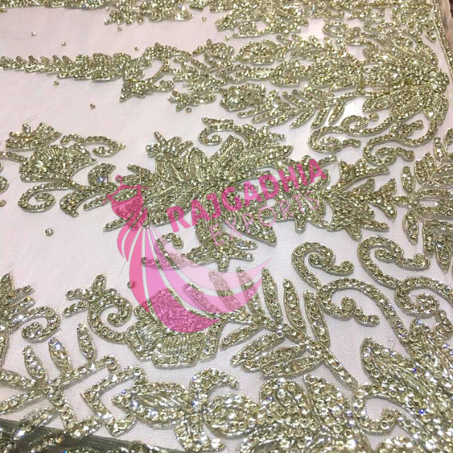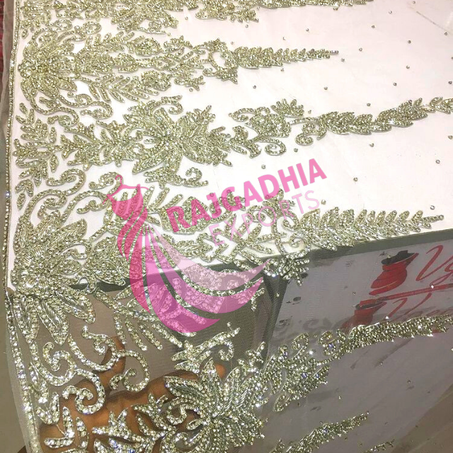 New Arrival Flower French Lace Fabric Wholesale Sequin and Beaded Fabric