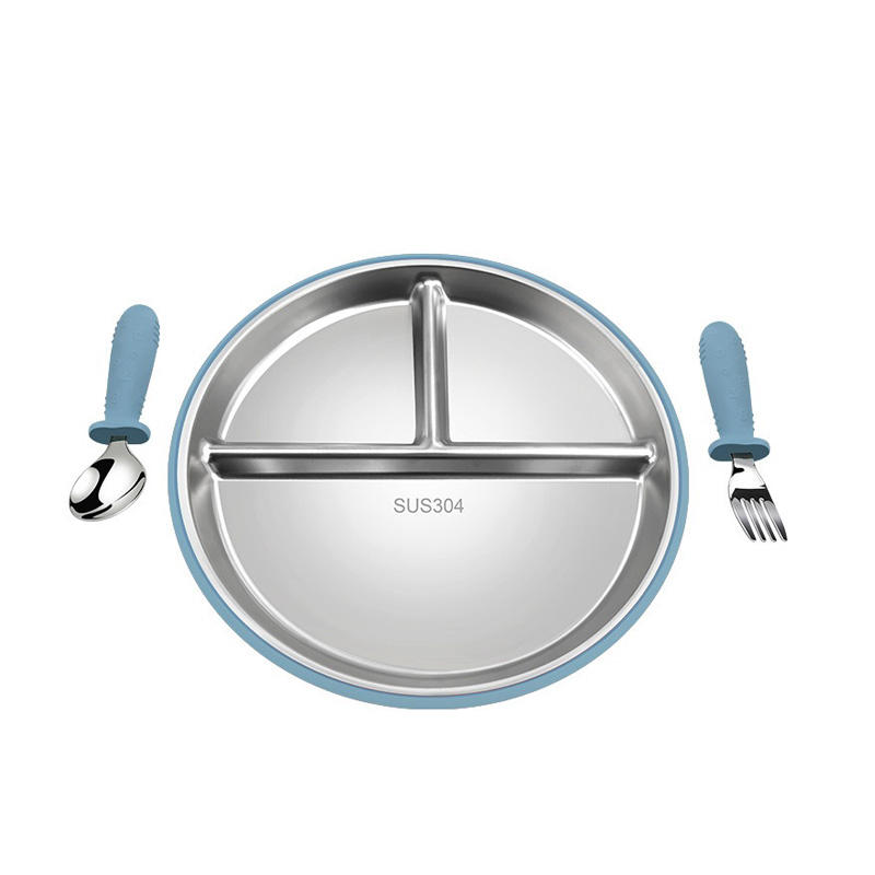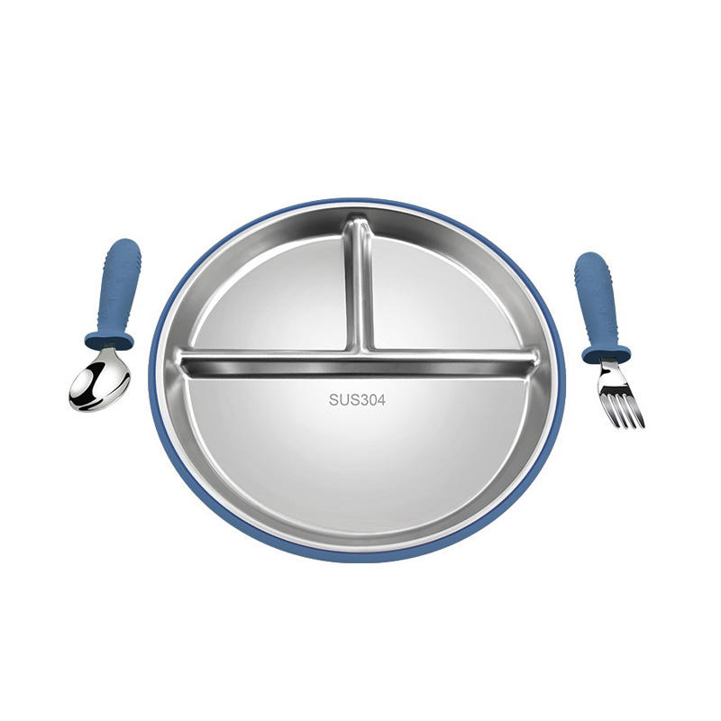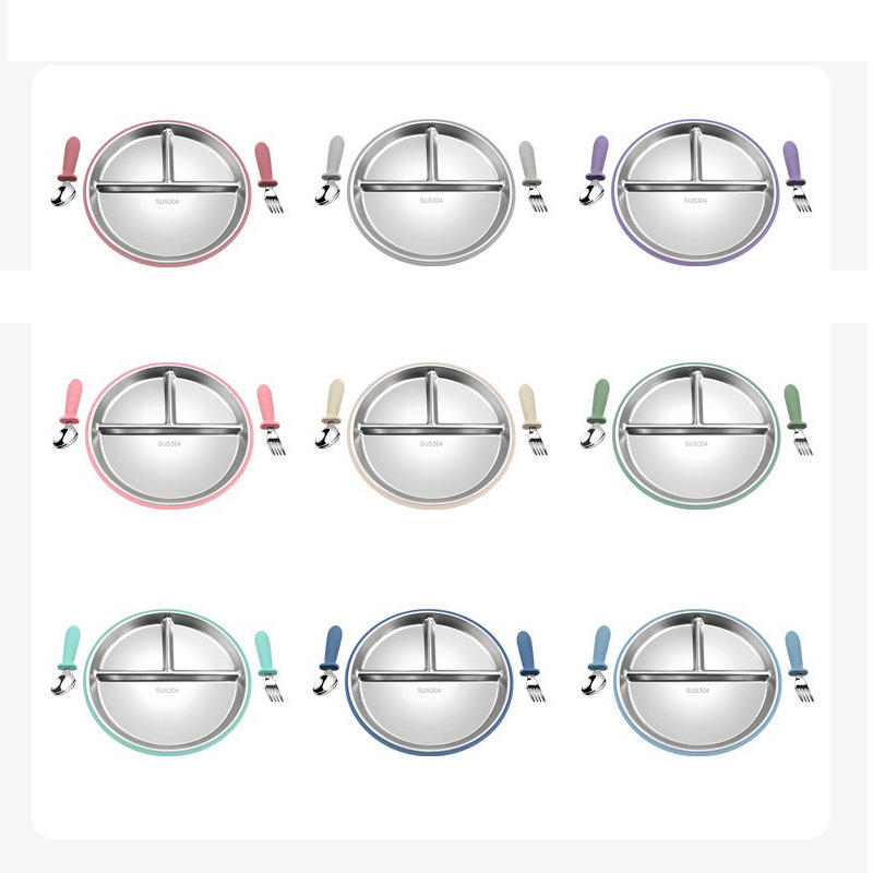New Arrival Food Grade Silicone Plate Spoon Fork Set Covered Edge Stylish Reusable Baby Tableware Daily Meals Eco-Friendly