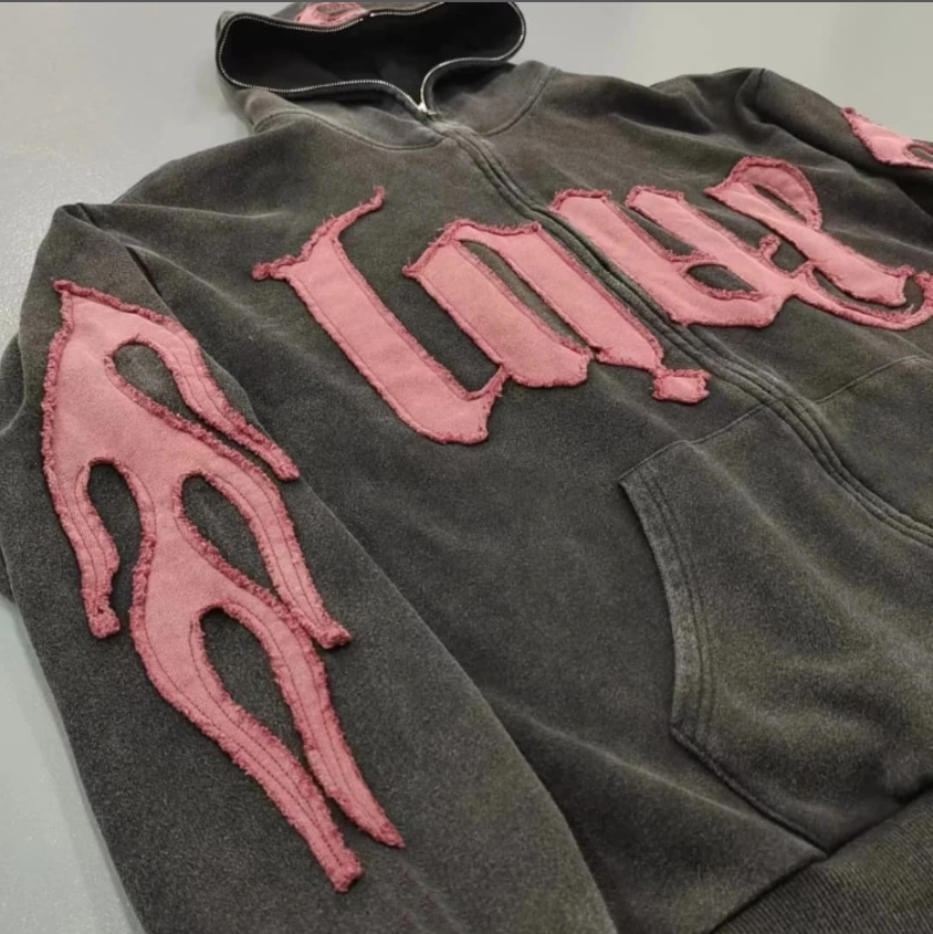New Arrival Vintage Regular Fit Men's Hoodie 100% Cotton French Terry Heavyweight Acid Wash with Rhinestone Studded Zip-Up