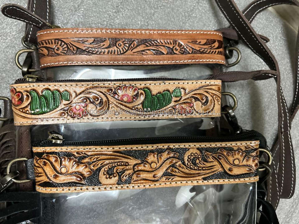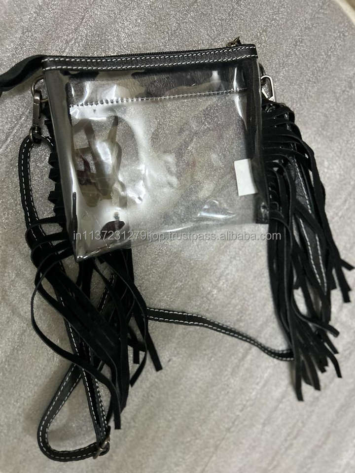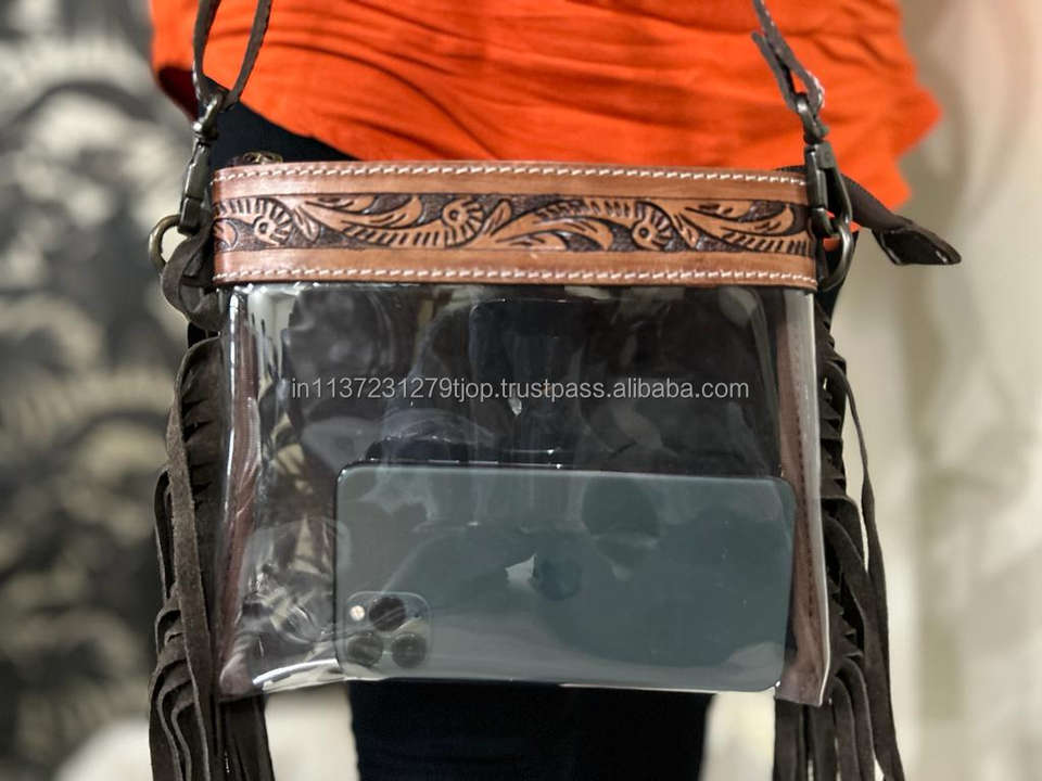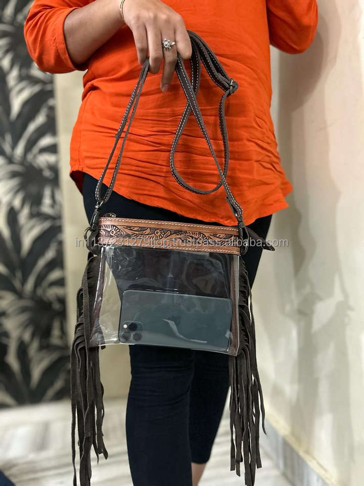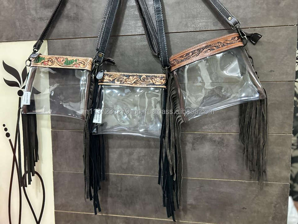 New Arrival Fringe Transparent Clear Bag Stylish Hand Tooled Carving Leather Purse Multi Uses Leather Bags for Women's Multi Use