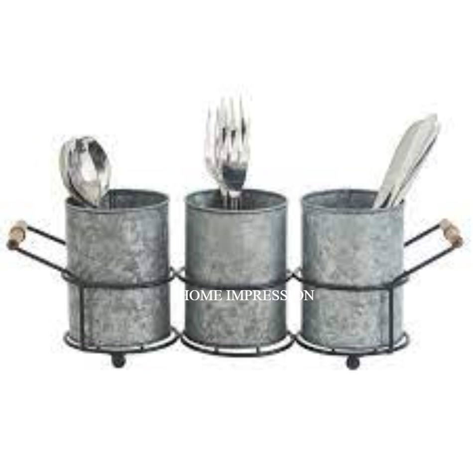 New Arrival Galvanized Metal Cutlery Caddy Kitchen Utensil Holder for Countertop Flatware Cutlery Holder at Wholesale Price