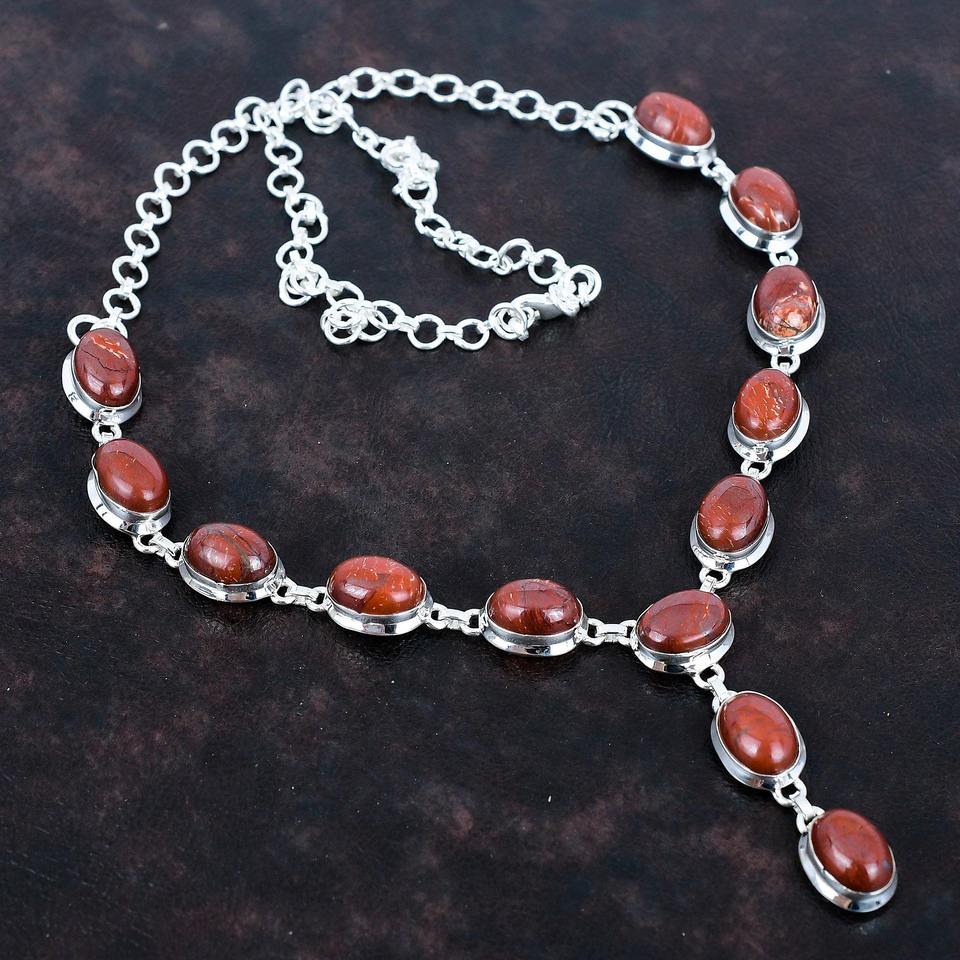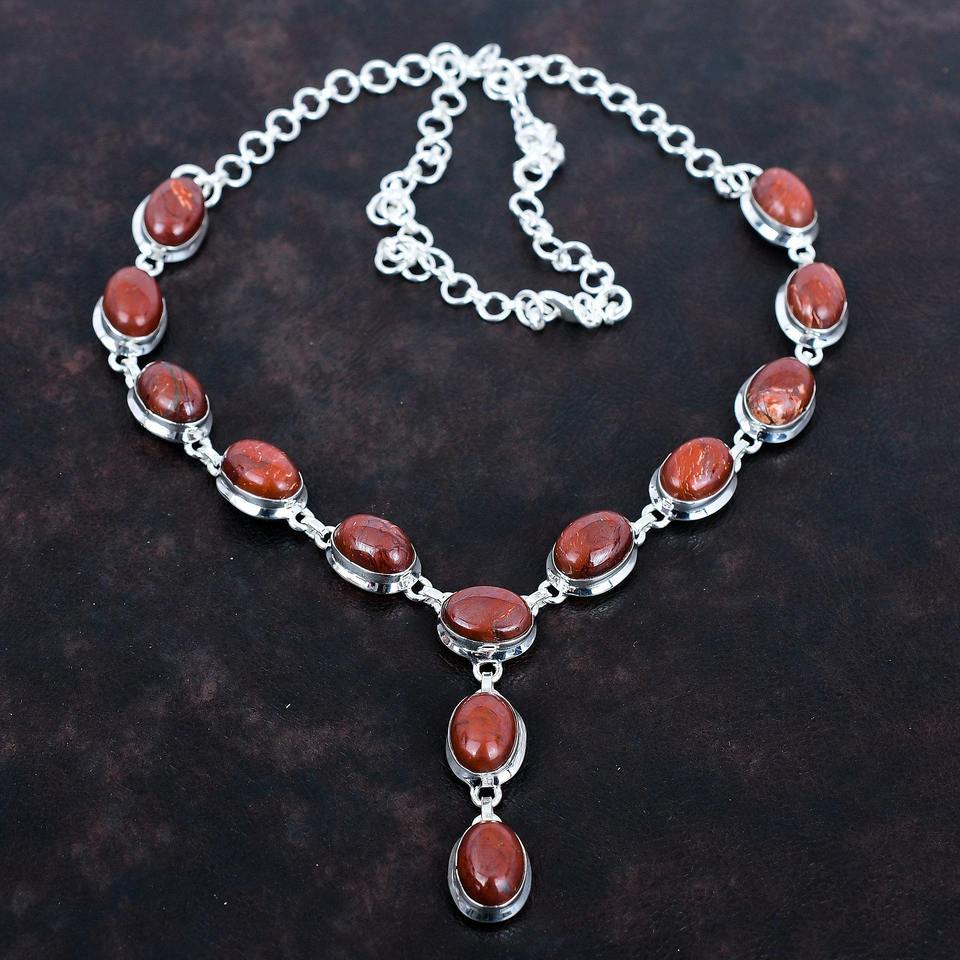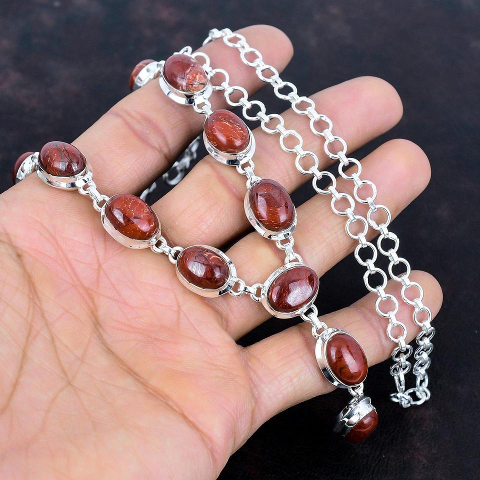 Top Quality Genuine 925 Sterling Silver Natural snakeskin jasper Cabochon Bezel Setting Chain Necklace Women Heavy Jewelry