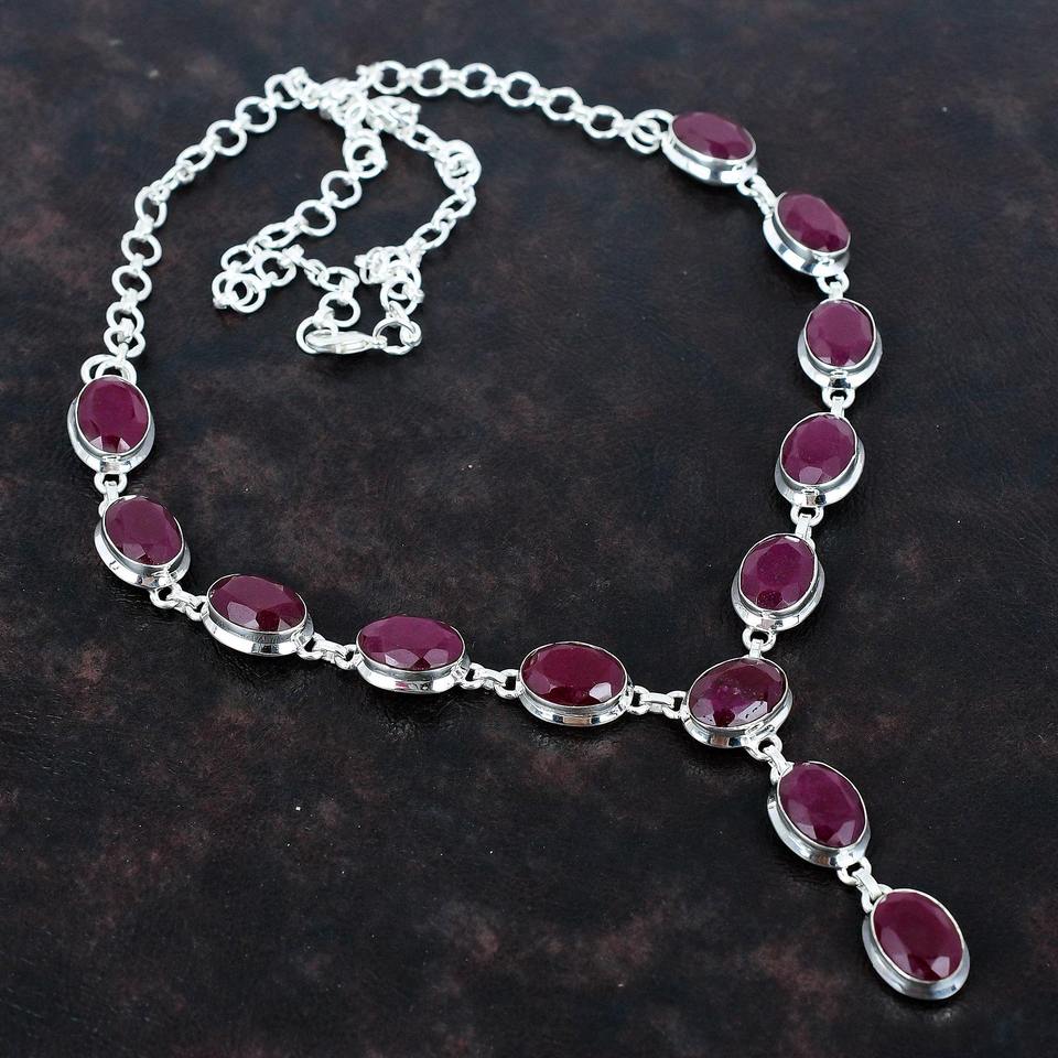 New Arrival Genuine 925 Sterling Silver Natural kashmir red ruby Cabochon Bezel Setting Chain Necklace Women Heavy Jewelry