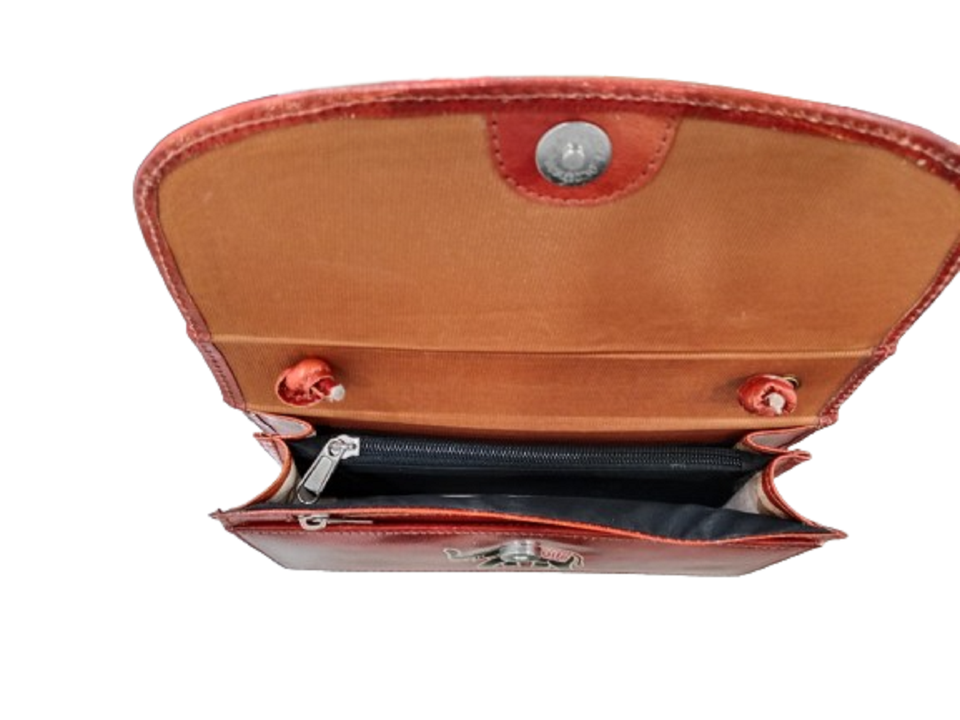 New Arrival Genuine Leather Traditional Printed Handcrafted Shantiniketan Women Purses Bag Sienna Color Hand Made Crossbody Bag