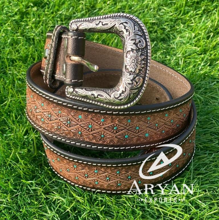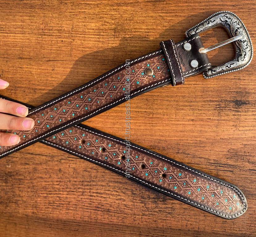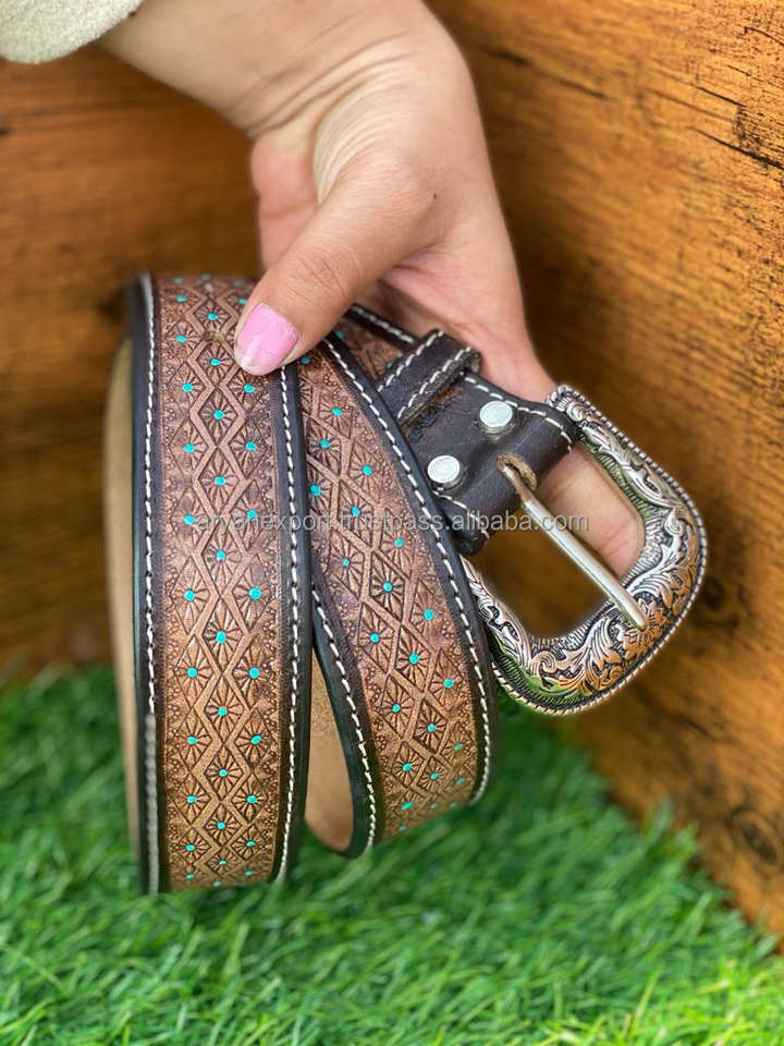 New Arrival Genuine Leather Western Hand Tooled and Hand Painted Floral Belts Real Handmade Tooled Leather Unisex Waist Belts