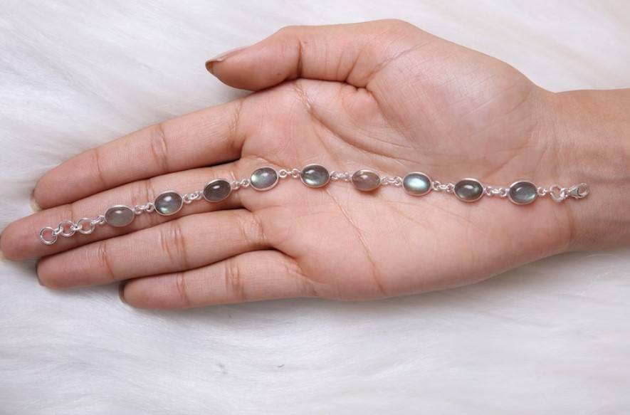 New Arrival Genuine Solid 925 Sterling Silver Natural Labradorite Oval Shape 8x10mm Bezel Setting Link Chain Baho Fine Bracelet