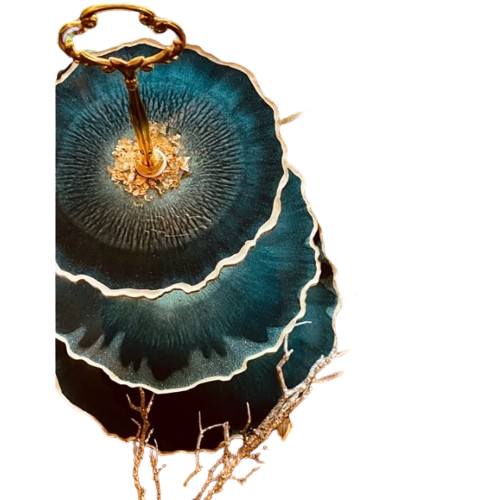 New Arrival Glitter Resin Art Cake Stand Handmade Green Color Bakeware Superfine Quality Epoxy Birthday Celebration Tool