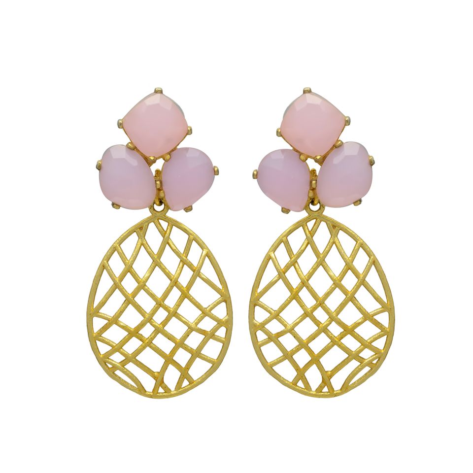 New Arrival Gold Plated Unique Design Dangle Earrings with pink Tourmaline Gemstone Brass Earrings