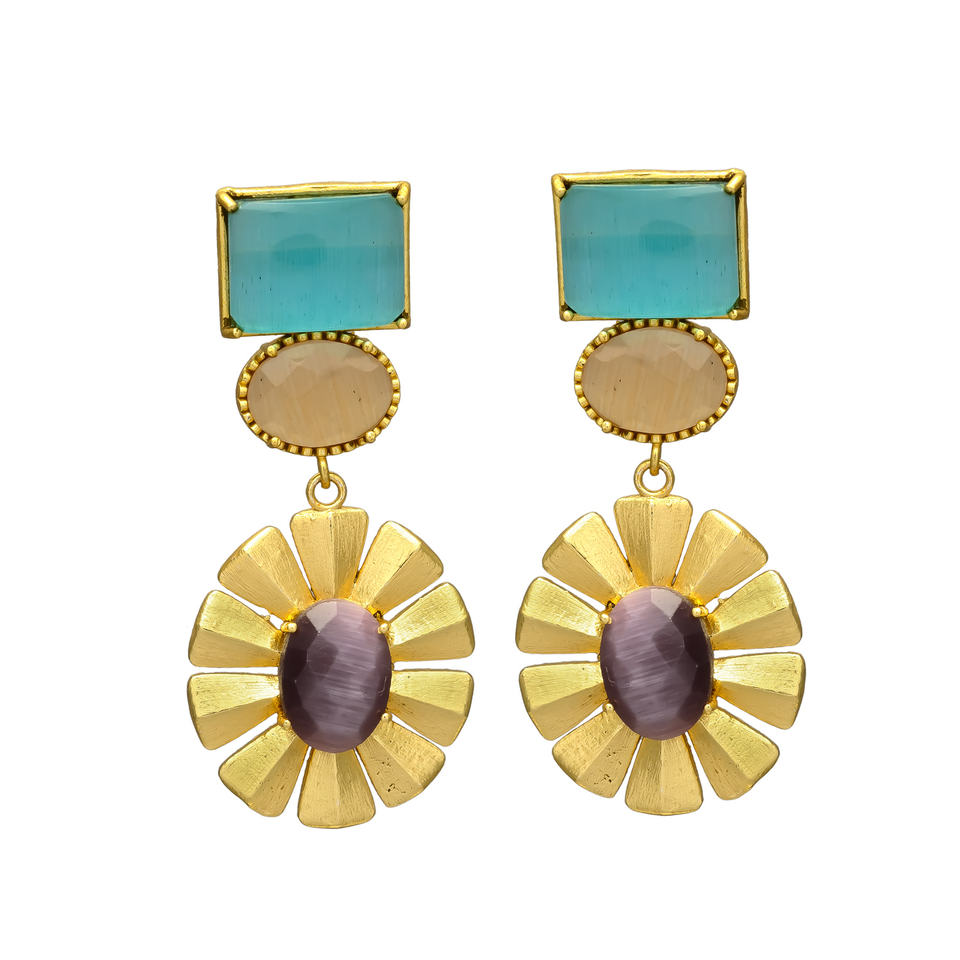 New Arrival Gold Plated Unique Design Dangle Earrings with Amethyst Hydro Gemstone Brass Earrings