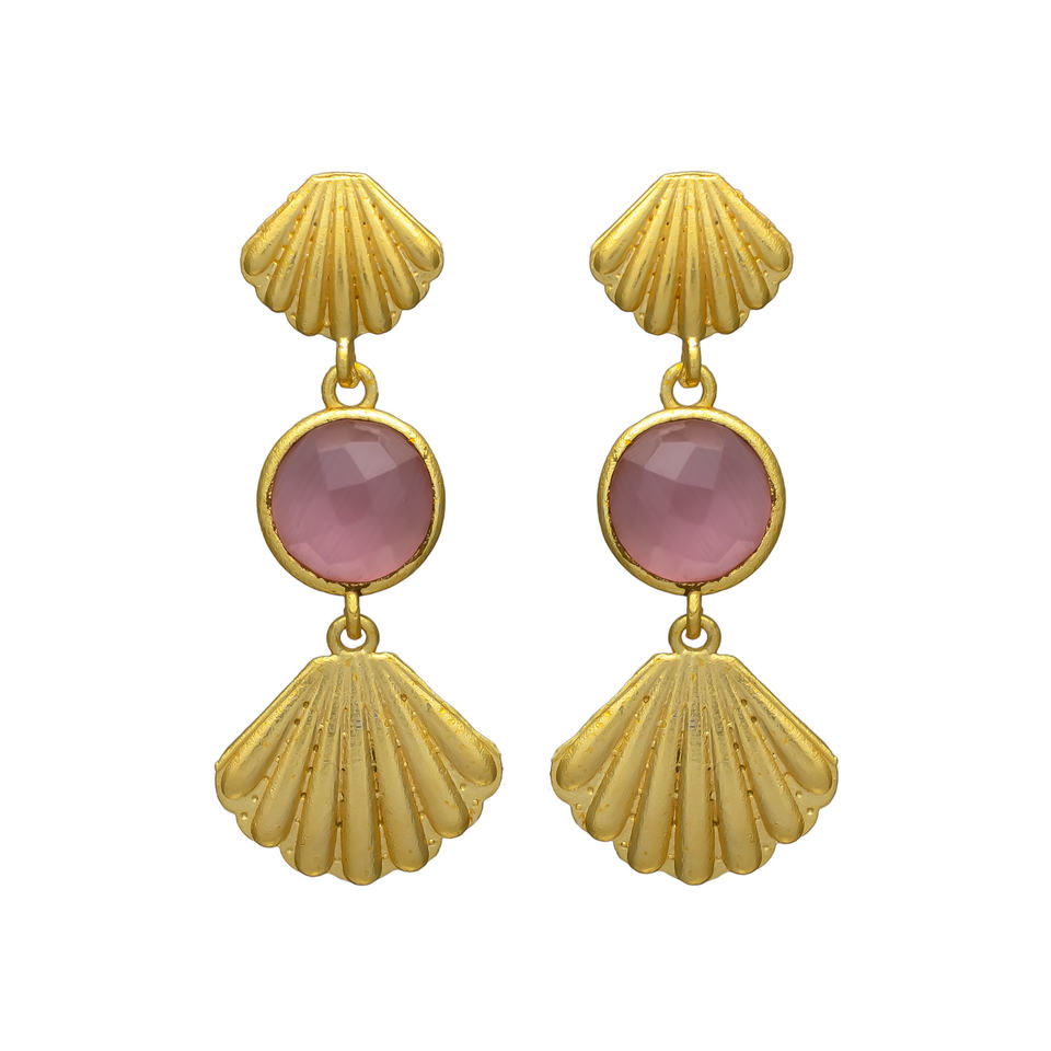 New Arrival Gold Tone Designer Dangle Earrings with Seashell Design pink Tourmaline Hydro Gemstone Brass Earrings