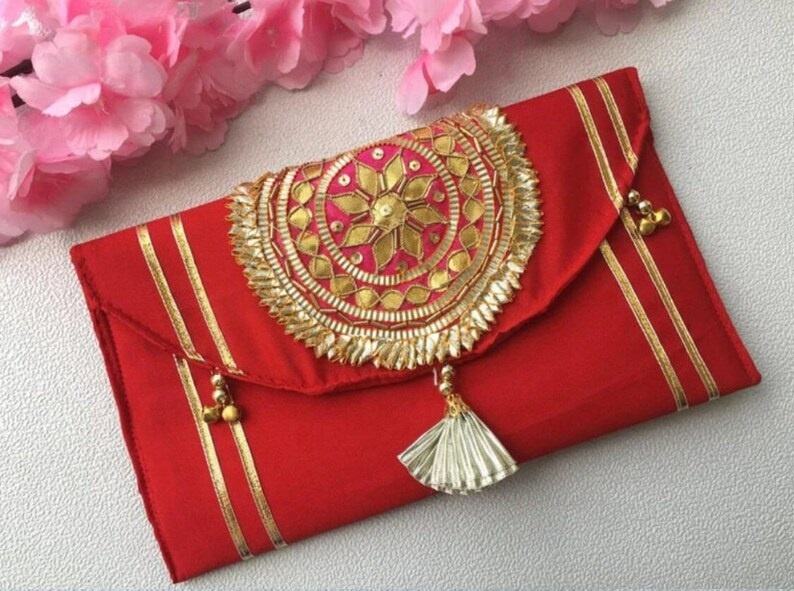 New Arrival Gotta Work Patola Silk Envelope Evening Bags Handmade Wedding Pouches for Women Daily Use Cotton Lining Great Gift