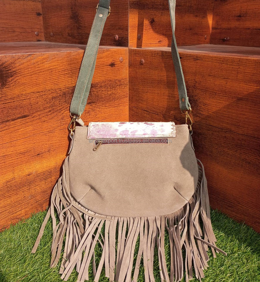 New Arrival Hair on Hide Fur Leather Fringe Designer Concho Sling Bag Metallic Fur Suede Leather Bag Party Wear Women Sling Bags