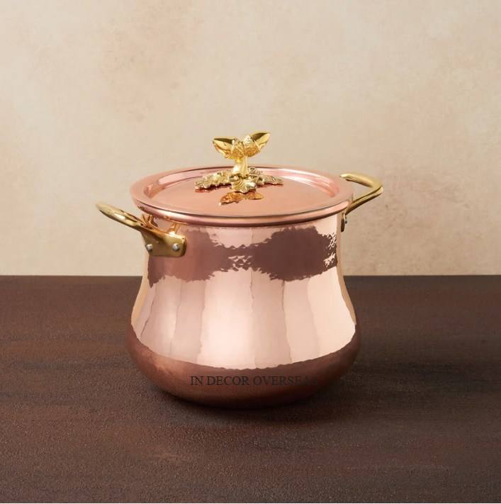 New Arrival Hammered Texture Ruffoni Copper Pot Food Warmer Cookware Kitchenware Supplies With Golden Handles And Unique Top Lid