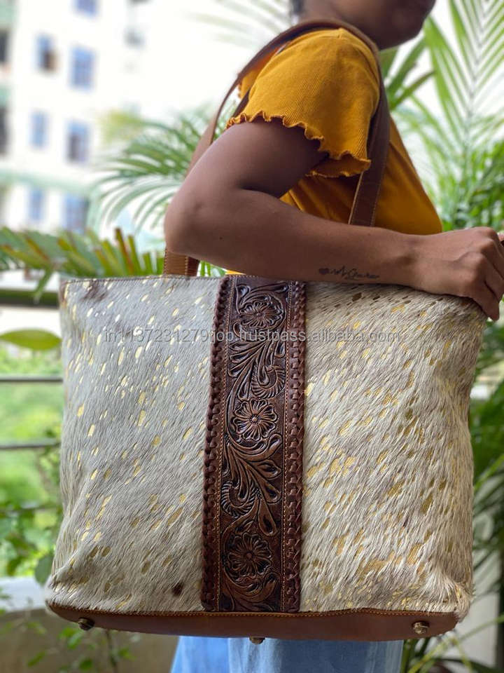 Product name:Carving Hand Tooled Cowhide Fur Tote Bags