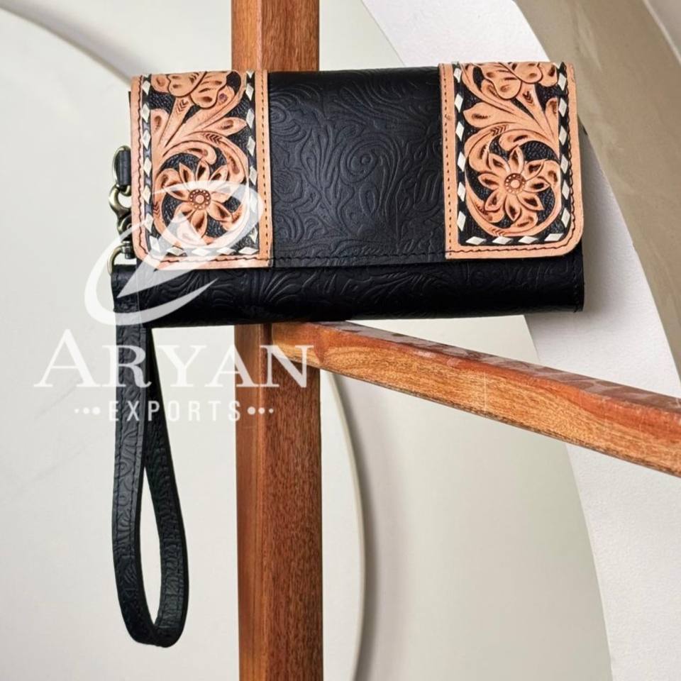 Western Hand Tooled Leather Wristlet Wallet