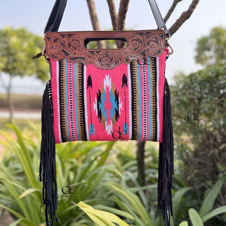 New Arrival Hand Tooled Fringe Handbag Jacquard Red Color Sling New Design Bohemian Aztec Fabric Bags Stylish Bags for Women
