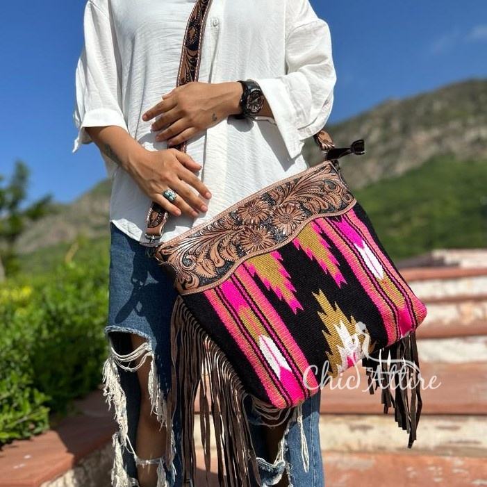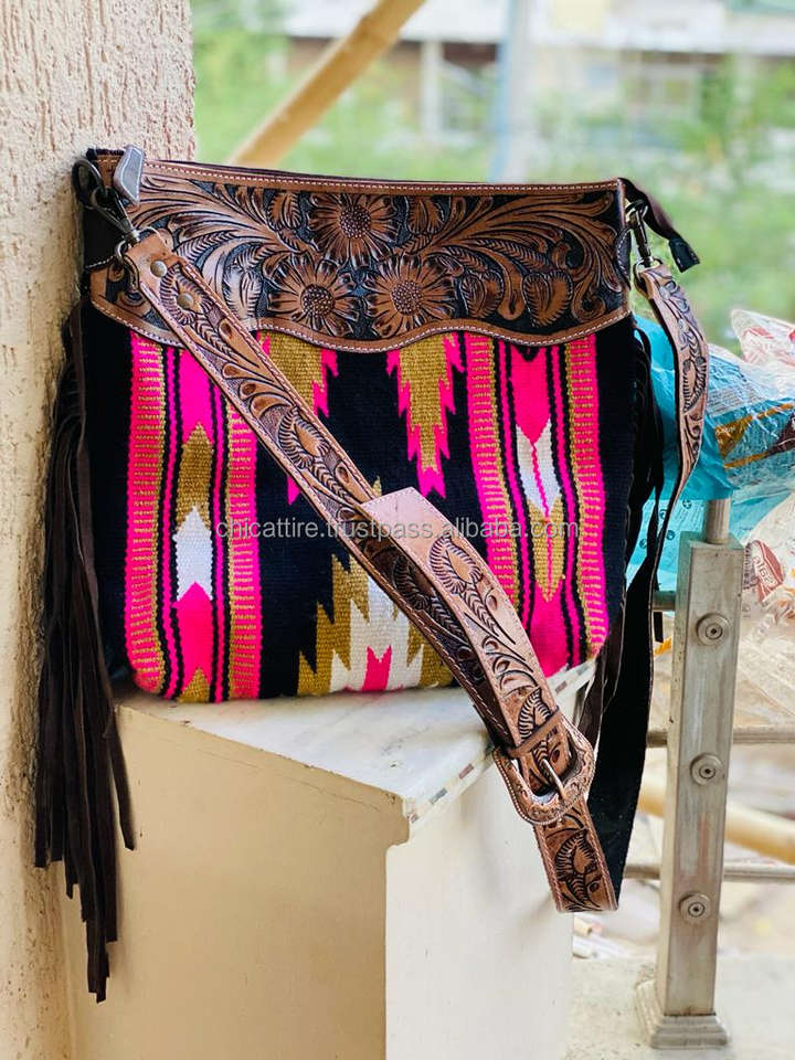 New Arrival Hand Tooled Fringe Handbag Aztec Saddle Blanket Sling Bag Bohemian Unique Design Stylish High Quality Bags for Women