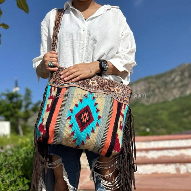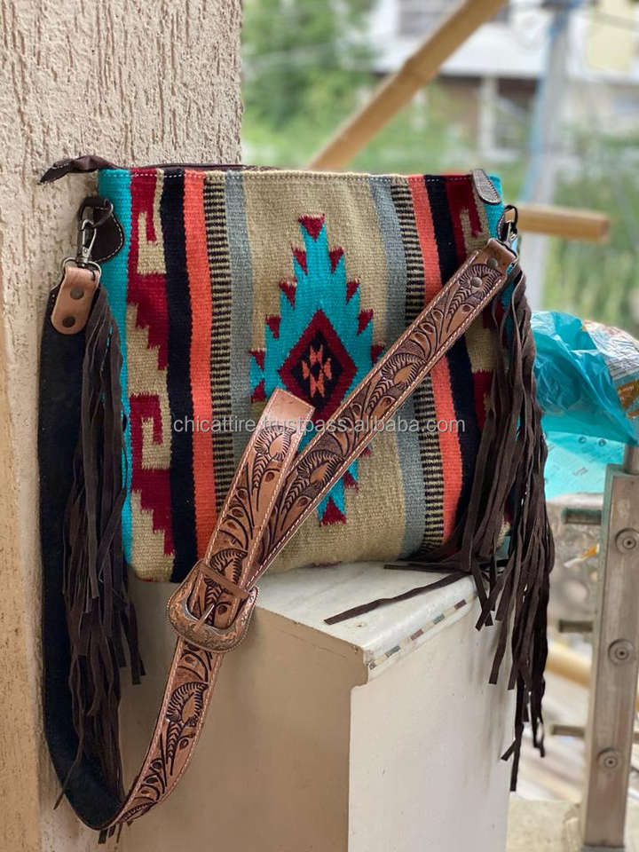 Product name:Hand Tooled Saddle Blanket Fringe Crossbody Bag