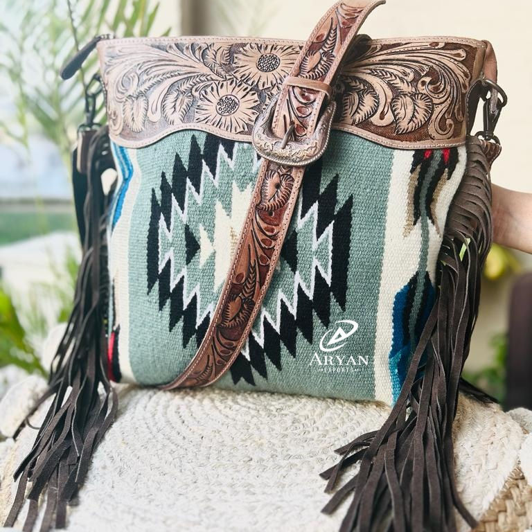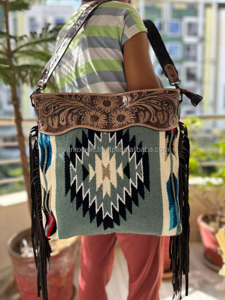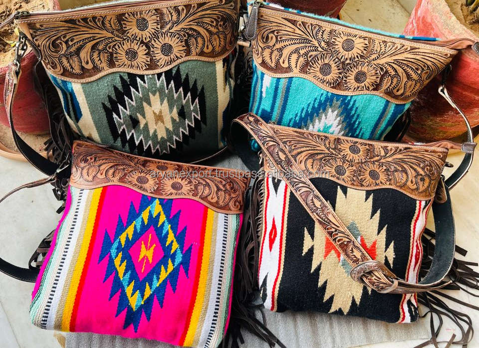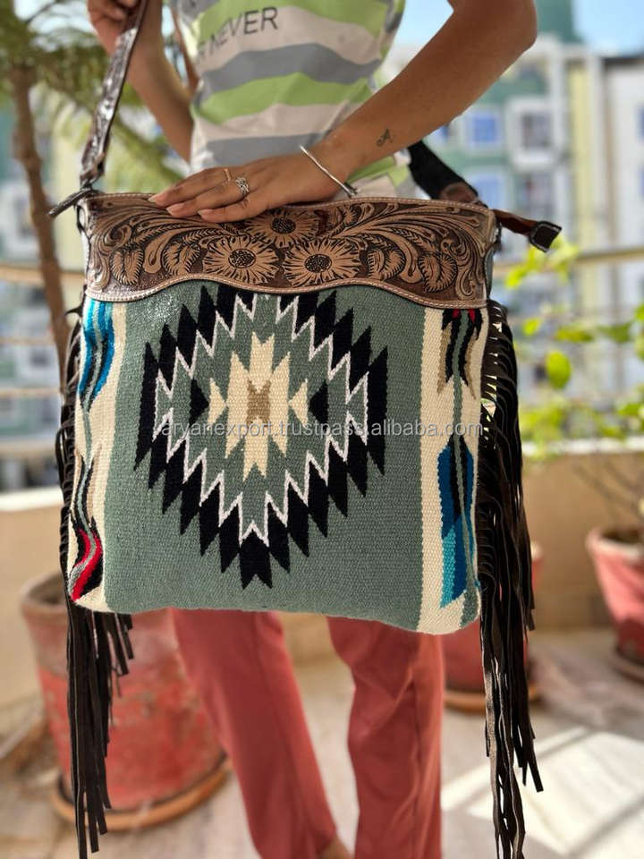 New Arrival Hand Tooled Fringe Handbag Aztec Saddle Blanket Sling Bag Bohemian Unique Design Stylish High Quality Bags for Women