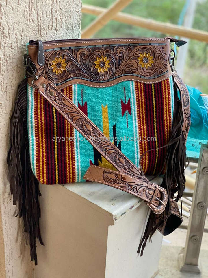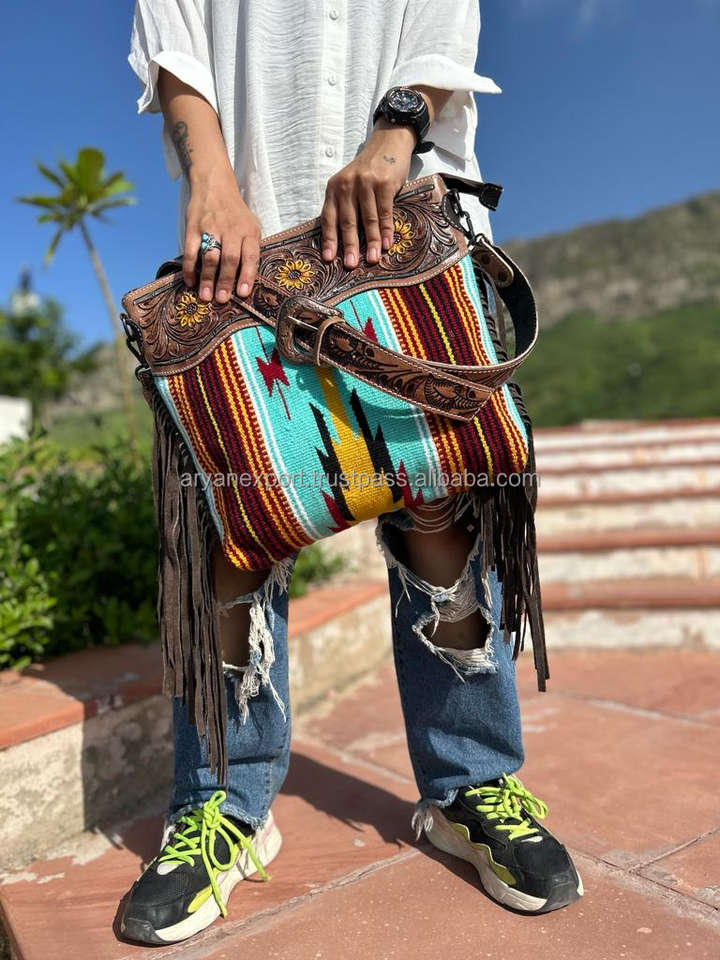 New Arrival Hand Tooled Fringe Handbag Aztec Saddle Blanket High Quality Sling Bag Bohemian Unique Design Stylish Bags for Women