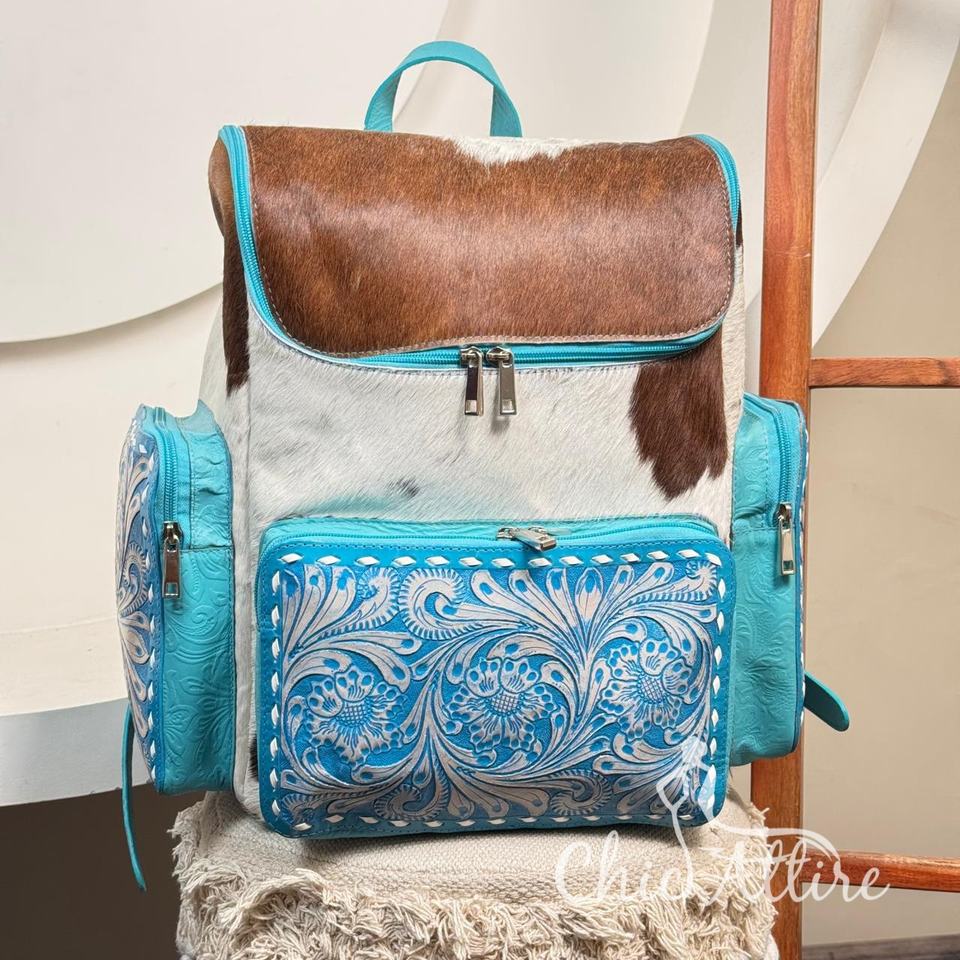 Hand Tooled Cowhide Leather Diaper Bag Backpack
