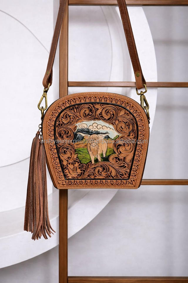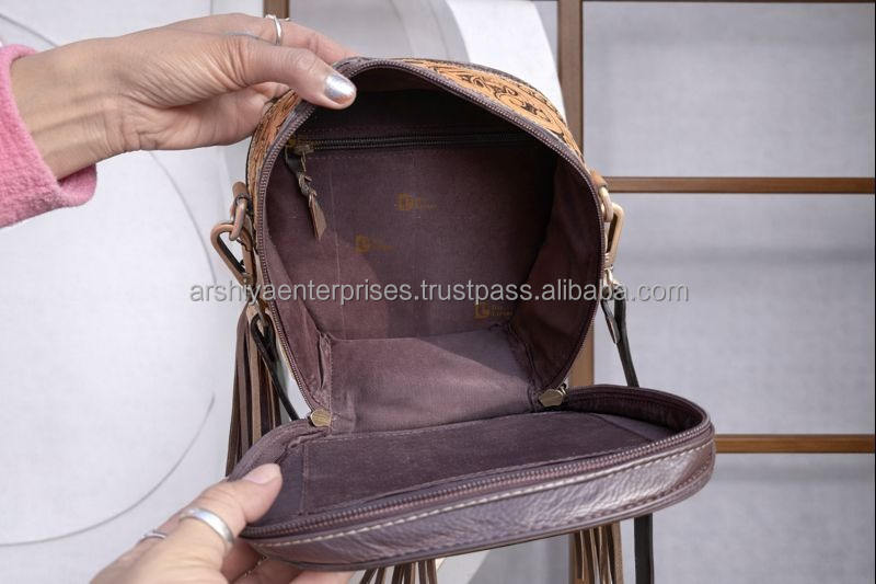 New Arrival Hand Tooled Leather Sling Bag Gypsy Boho Latest Designer Handmade Western Stylish Brown Colour Multi Uses Bags