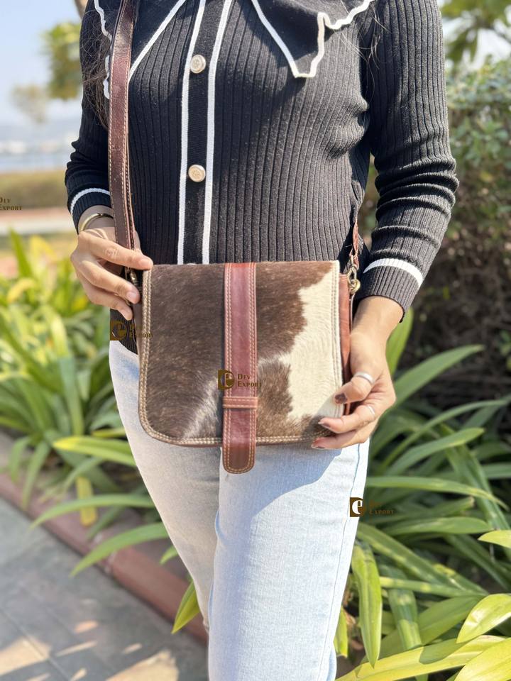 New Arrival Handbag Cowhide Fur Leather Sling Bag Gypsy Boho Vintage Handmade Western Leopard Print Lightweight Adjustable Strap