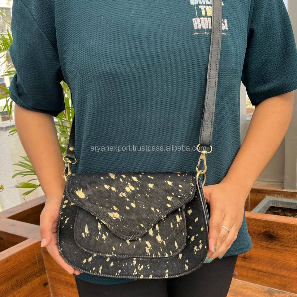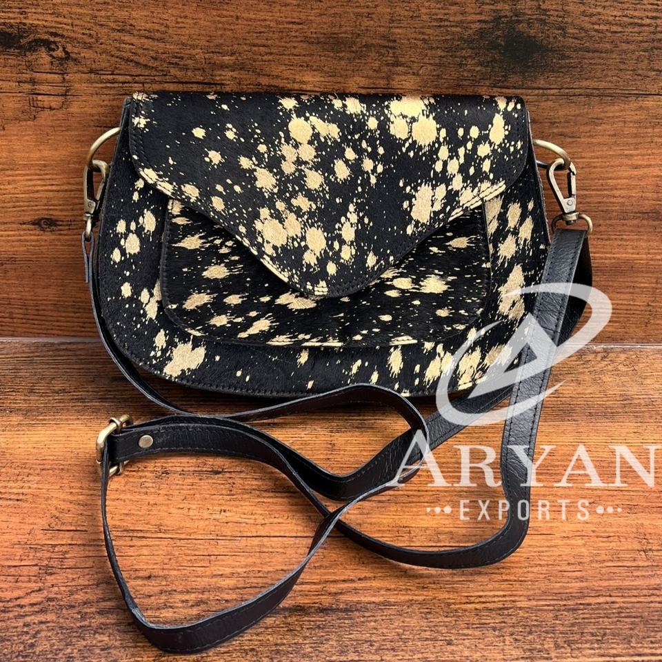 New Arrival Handbag Metallic Fur Leather Sling Bag Gypsy Boho Cowhide Fur Leather Vintage Handmade Western Style Sling Bag