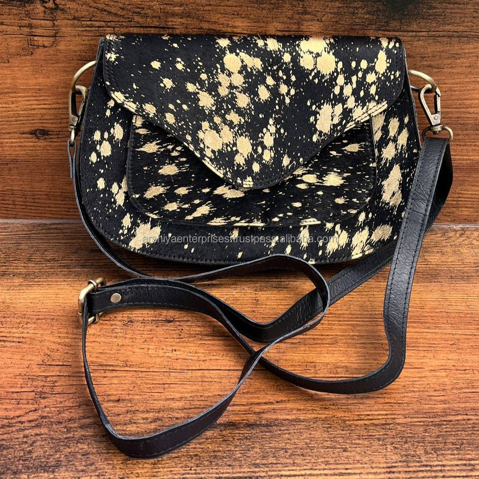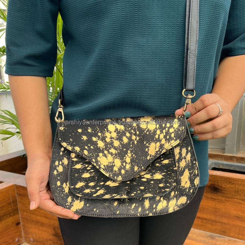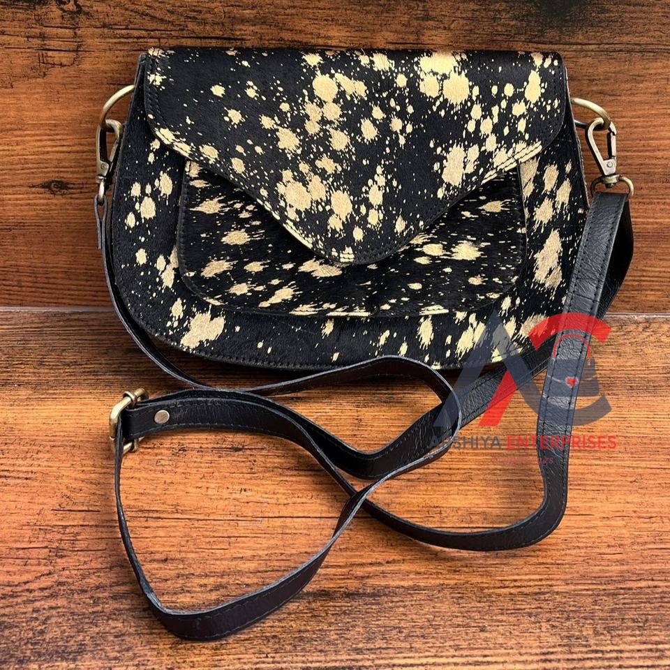 New Arrival Handbag Metallic Fur Leather Sling Bag Gypsy Boho Cowhide Fur Leather Vintage Handmade Western Style Sling Bag