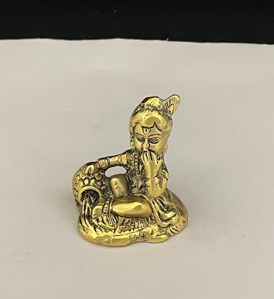 New Arrival Handicraft Brass Metal Gold Plated Small Size Sitting Krishna Statue for Home Decoration and Gifting