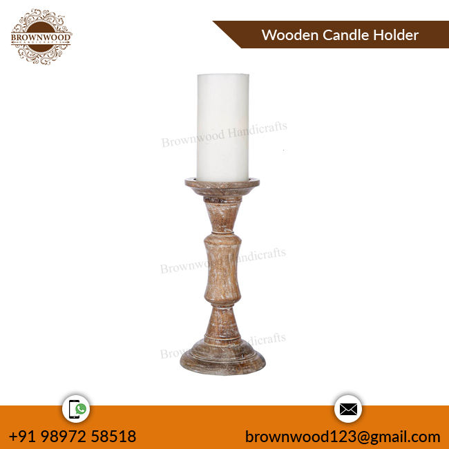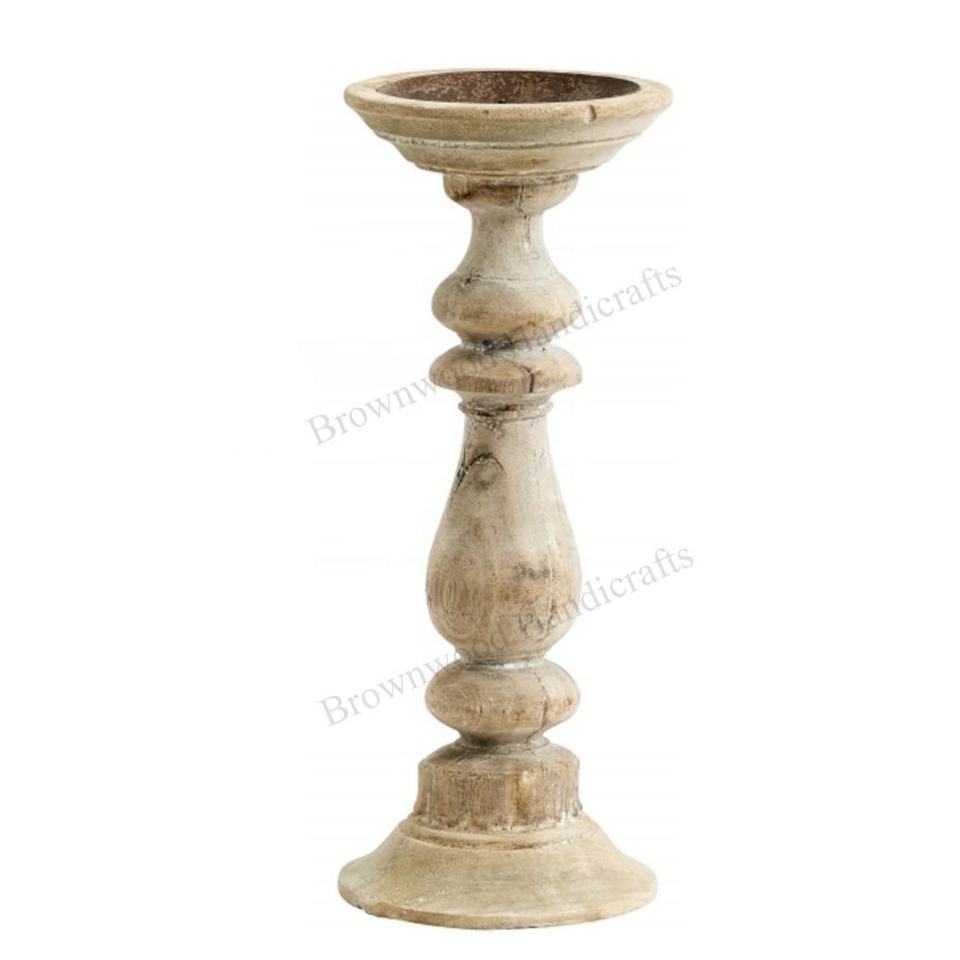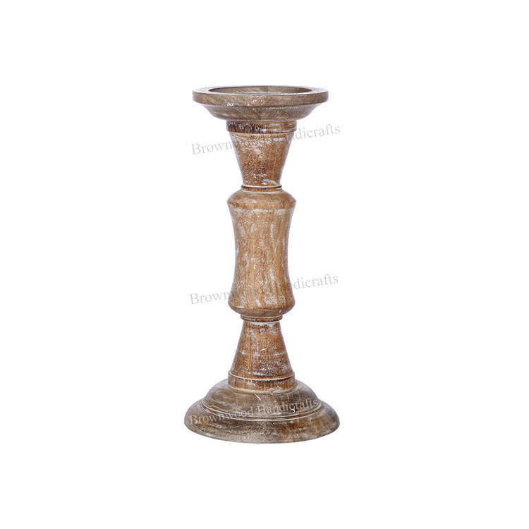 New Arrival Handmade Burnt White Wash Mango Wood Candle Stand Elegant Home Decorative Candle Holder for Christmas