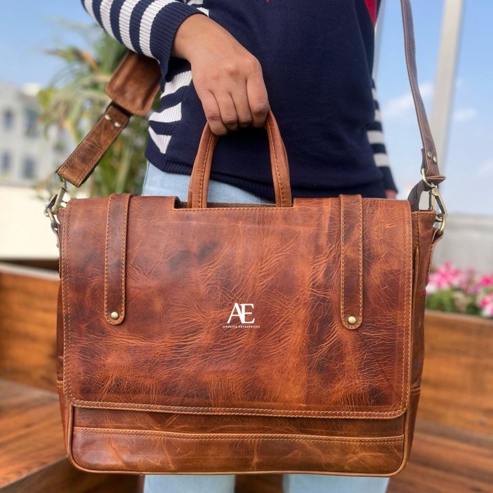 Real Handmade Crunch Leather Laptop Messenger Bag